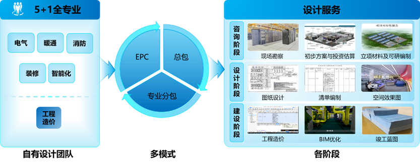 基于电信级数据中心技术沉淀,形成了覆盖数据中心全专业的自有设计团队,为各类数据中心给予多模式、覆盖各阶段的设计服务。